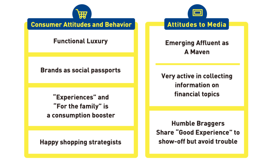 Unlike most other socio-economic classes, the Emerging Affluent are defined more by their qualitative data. Rather than being a hard demographic, they are a dynamic psychographic, driven by their wants, needs, and aspirations. They are, in many ways, a market that can only be seen through the lens of sei-kastu-sha, because the Emerging Affluent is more of a state of being than a strict categorization.
